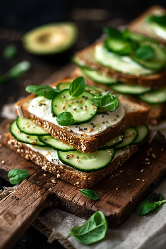 Store leftover cucumber sandwiches in an airtight container in the fridge. They are best eaten within a day or two. If you wish to prepare them in advance, simply keep the filling and bread separate until you’re ready to serve. Unfortunately, these sandwiches do not freeze well due to the texture of the cucumbers. Reheating isn’t recommended, as they are best enjoyed fresh and cold.