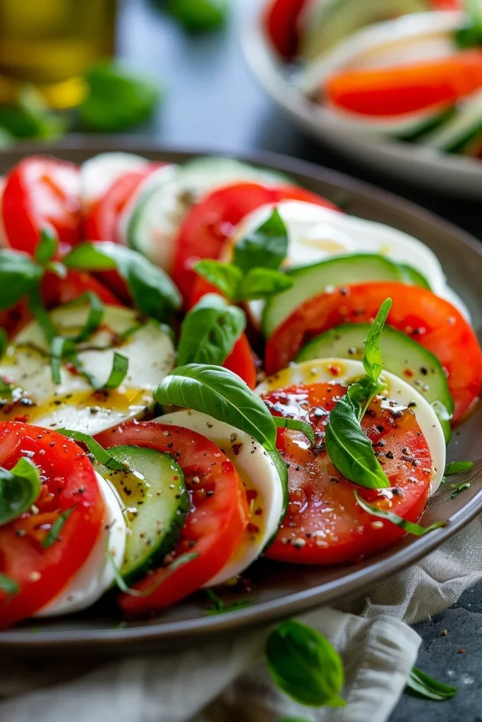Growing up, summers meant fresh vegetables and herbs from the garden. My family loved bringing the flavors of Italy to our table. The tangy taste of basil and the burst of juicy tomatoes always brought smiles. This Cucumber Caprese Salad captures those memories perfectly. It’s bright, colorful, and so easy to make!